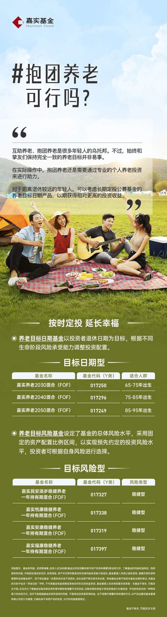 *風險提示:基金投資需謹慎,投資人應當閱讀《基金合同》、《招募說明書》、《產(chǎn)品資料概要》等法律文件,了解基金的風險收益特征,特別是特有風險,并根據(jù)自身的投資目的、投資經(jīng)驗、資產(chǎn)狀況等判斷是否和自身風險承受能力相適應。基金管理人承諾以誠實信用、謹慎盡責的原則管理和運用基金資產(chǎn),但不保證基金一定盈利或本金不受損失。過往業(yè)績不預示其未來業(yè)績,其他基金的業(yè)績也不構成本基金業(yè)績的保證。個人養(yǎng)老金可投公募基金范圍具體以中國證監(jiān)會確定的產(chǎn)品名錄為準。“養(yǎng)老”字樣不代表收益保障或任何形式的收益承諾,個人養(yǎng)老金基金不保本,可能發(fā)生虧損。不同產(chǎn)品的風險收益特征可能不同,投資人應根據(jù)自身年齡、退休日期、收入水平和風險偏好等選擇合適的養(yǎng)老金基金。