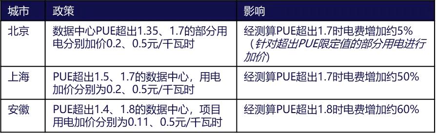 表:各地針對數據中心能效階梯電價加價政策的影響